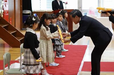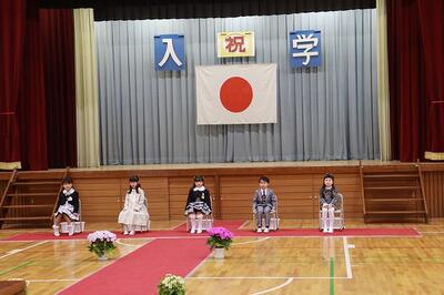 新品のランドセルを背負った5人の新入生が、池小学校の新しい仲間となりました。